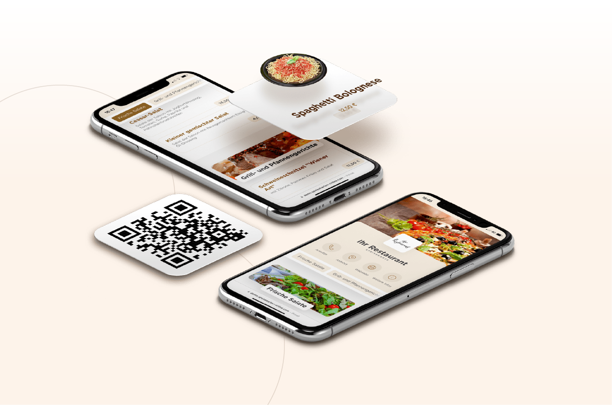 Mithilfe der Online-Speisekarte können Sie überall Ihre kulinarische Auswahl präsentieren. Per QR-Code erhalten Sie direkten Zugriff auf alle aktuellen Speisen, Preise und Angebote. Bieten Sie Ihren Gästen eine umfangreiche Mitnahmekarte, verlinken Sie Ihre Speisekarte auf Ihren Online-Kanälen oder profitieren Sie von der Erreichbarkeit über Google und Co.